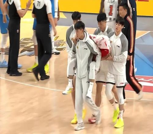 徐杰受伤是在第二节还剩4分多钟的时候,在一次进攻中,徐杰在篮下附近被周琦意外撞倒,当时应该是顶到了膝盖,压到了脚踝,这直接导致徐杰受伤,倒地不起。看到徐杰受伤,赵睿和胡明轩第一时间过去查看,赵睿更是呼叫队友进场,很快担架车和医生进场,随着徐杰头盖毛巾,被队友背离球馆。
